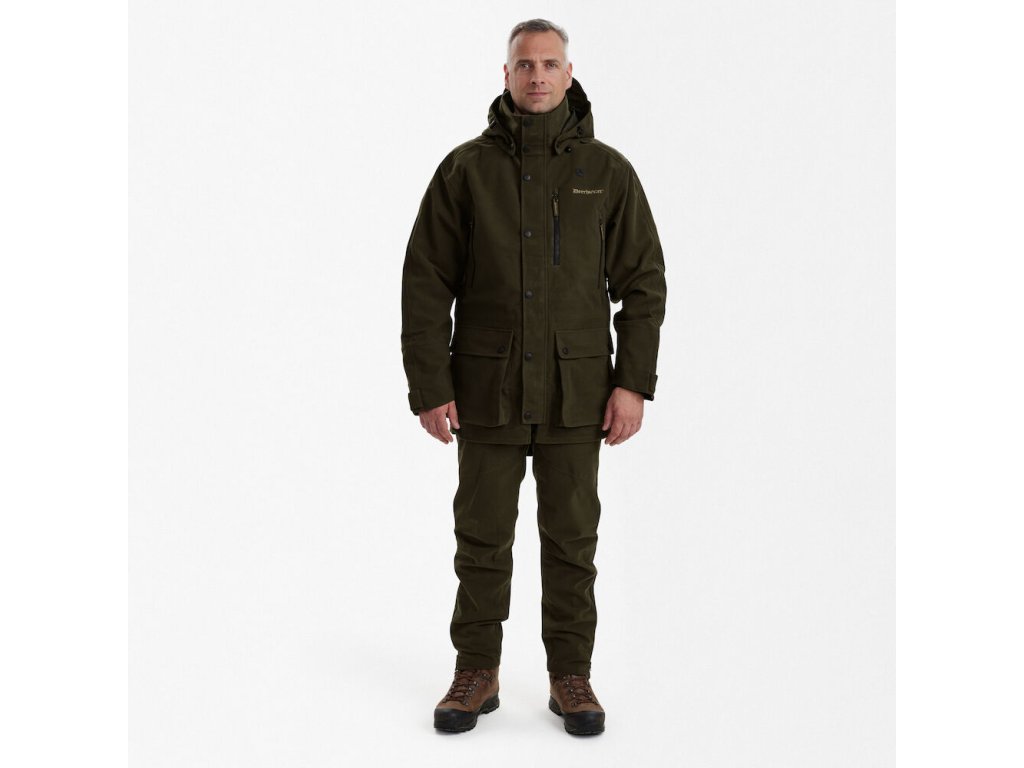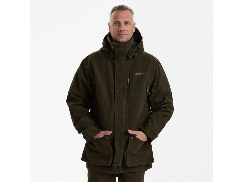 Bunda Deerhunter Pro-Gamekeeper je vyrobená pre profesionálov, ktorí vedia, čo sa od ich oblečenia vyžaduje pri každodennom lovení vonku. Pro-Gamekeeper je robustná bunda pre surové počasie a náročný terén. S membránou Deer-Tex® Performance Shell je bunda 100% vetrom a nepremokavá a priedušná. Deer-Tex® Performance Shell je strečová membrána, ktorá sa vyznačuje výbornou pružnosťou. Membrána je vybavená päťročnou zárukou. Pro-Gamekeeper je vybavený nepremokavými zipsami pod pažou pre väčšiu ventiláciu pri fyzickej aktivite, niekoľkými praktickými vreckami ako aj vreckami na hrudi, ktoré majú aj vodotesný zips. S týmto odevom ste dobre chránení pred vetrom a počasím!