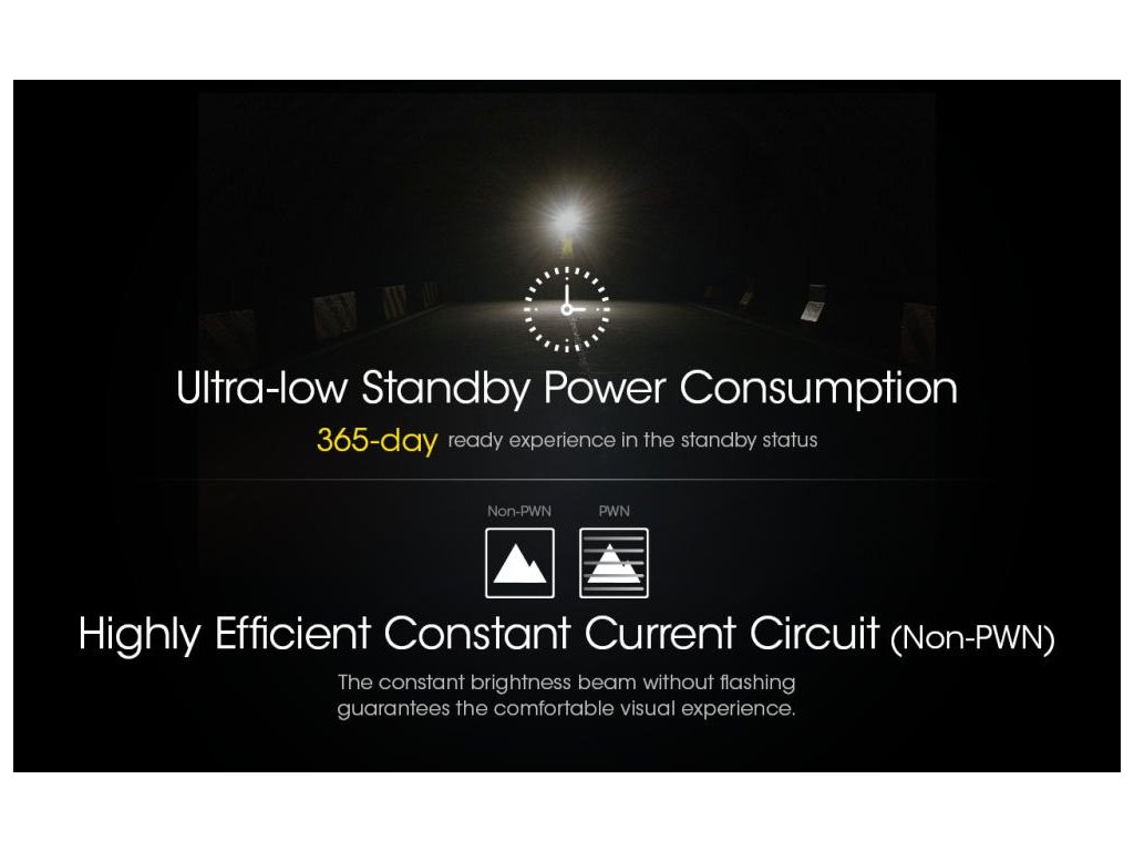 - Vysoko účinný obvod konštantného prúduposkytuje stabilný výkon s dobou prevádzky 45 hodín.