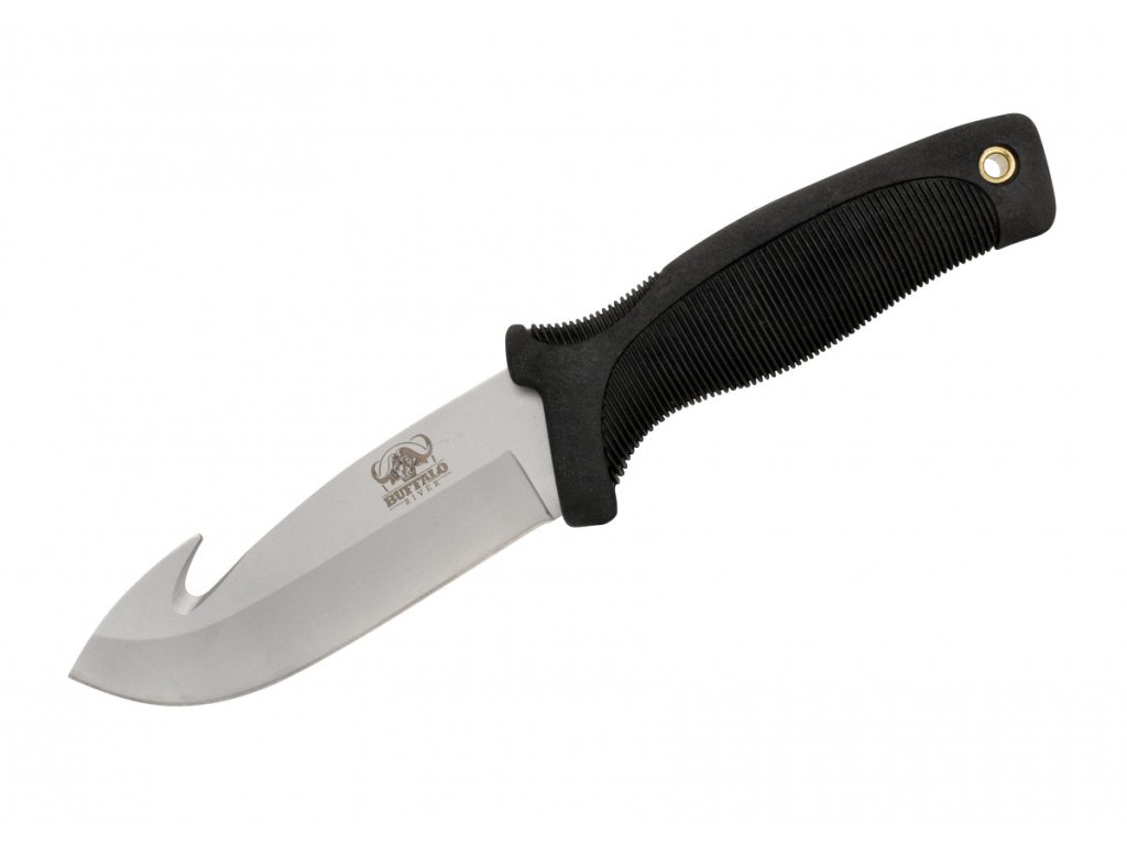 BRKM 105 - nôž s párakom, rovné ostrie, šedá čepeľ dlhá 11,5cm, hrúbka čepele 2,8mm, celková dĺžka 24,5cm, rukoväť z tvrdenej gumy, nylonové puzdro s prievlekom na opasok
