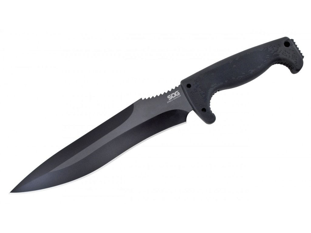 JUNGLE WARRIOR - celková dĺžka 38,7 cm, čepeľ 24,8 cm, hrúbka čepele 4,8 mm, oceľ 8Cr13 MoV nerez Rc. 56-58, rukoväť z gumy "Kraton", pevné nylonové puzdro s prievlekom na opasok a kapsičkou