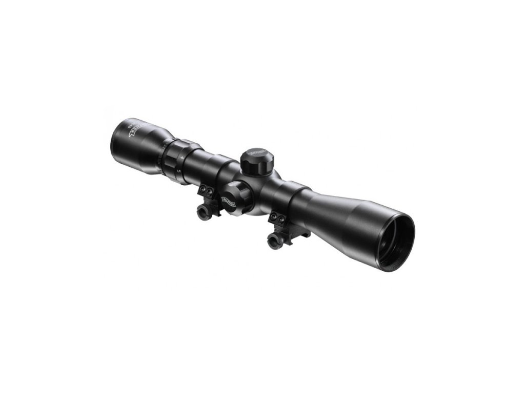 Puškohľad Umarex 3-9x40, štvorramenný kríž v strede prechádzajúci do nitky, montáž na weaver lištu, dĺžka 300 mm, priemer tubusu 30 mm. Vhodný pre vzduchové zbrane a malorážky.