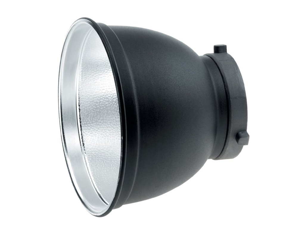 Reflektor s rozšířeným otvorem pro uchycení deštníku.